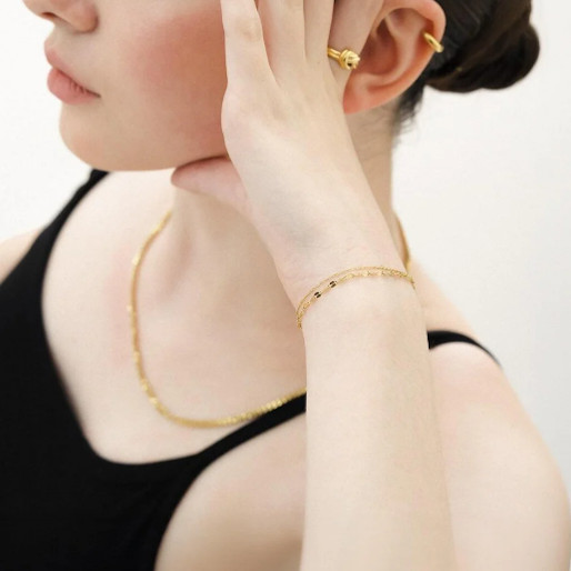 動くたびにきらりと光るアクセサリーが、細い手首をさらに引き立て、女性らしい繊細さを強調してくれます。