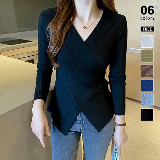 特に、ハイゲージ(編み目が細かい)で、体にほどよくフィットするリブニットなどは、女性らしい曲線を自然に強調してくれます。
