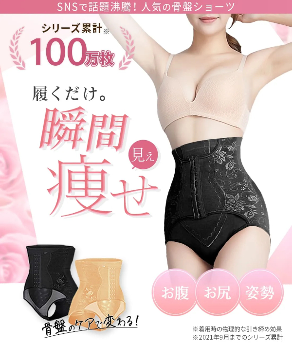 このアイテムは、骨盤周りのサポート機能とコルセットの引き締め力を一つに融合させた、新感覚の補正下着です。