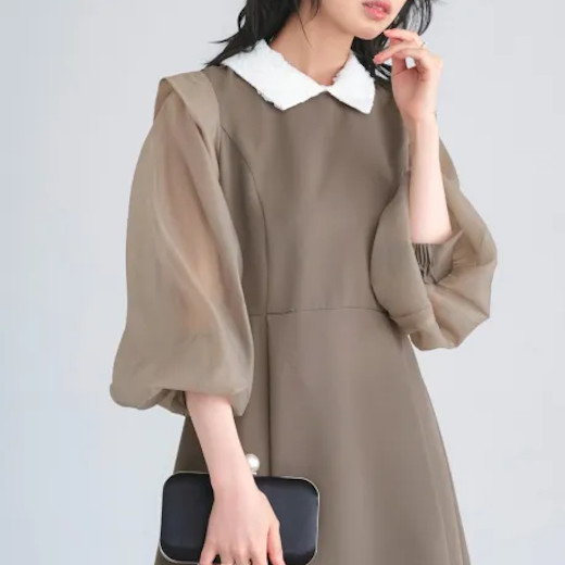 かしこまりすぎたフォーマルドレスではなく、控えめな艶感のある素材やレース、ツイードなどを使ったドレッシーなワンピースを選びましょう。