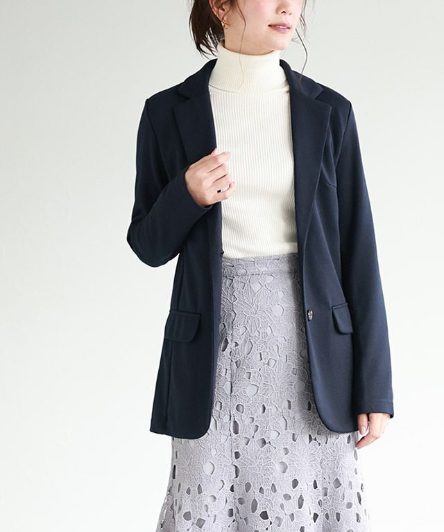 全体的にシンプルなデザイン、ハリのある素材、すっきりした首元がおすすめです。
